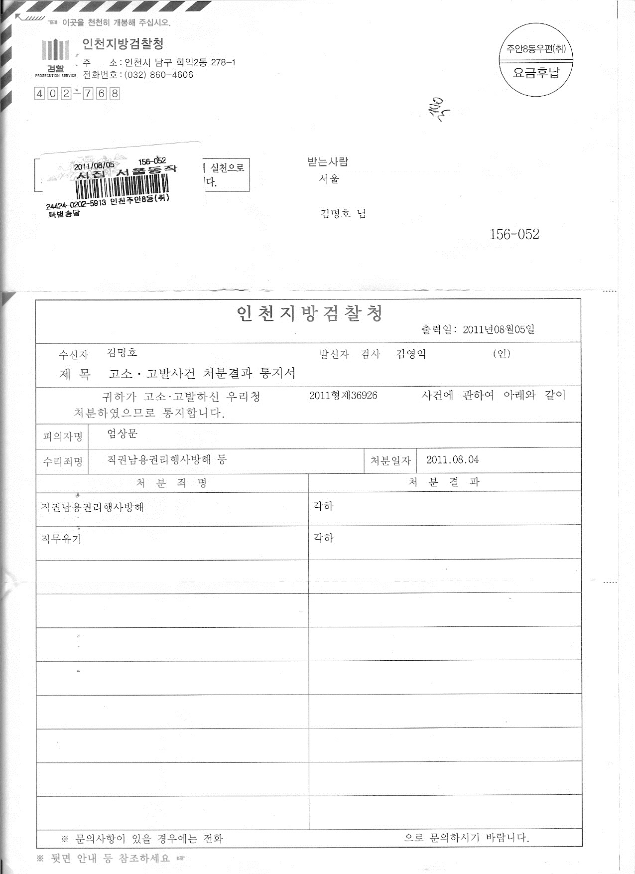 자신들 비리관련 고소장들을 발송불허하는 등의 개지랄을 떤 것. 그 진상들이 인권위 조사에서 낱낱이 밝혀진 결과의 산물이 바로