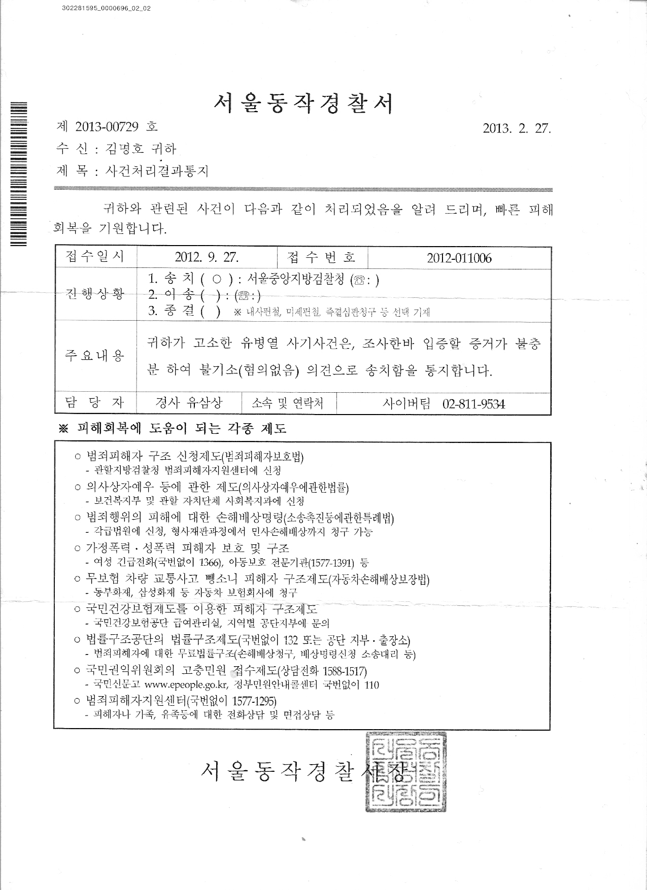 [2012. 9.28] 동작 경찰서 에 고소하러 갔더니...