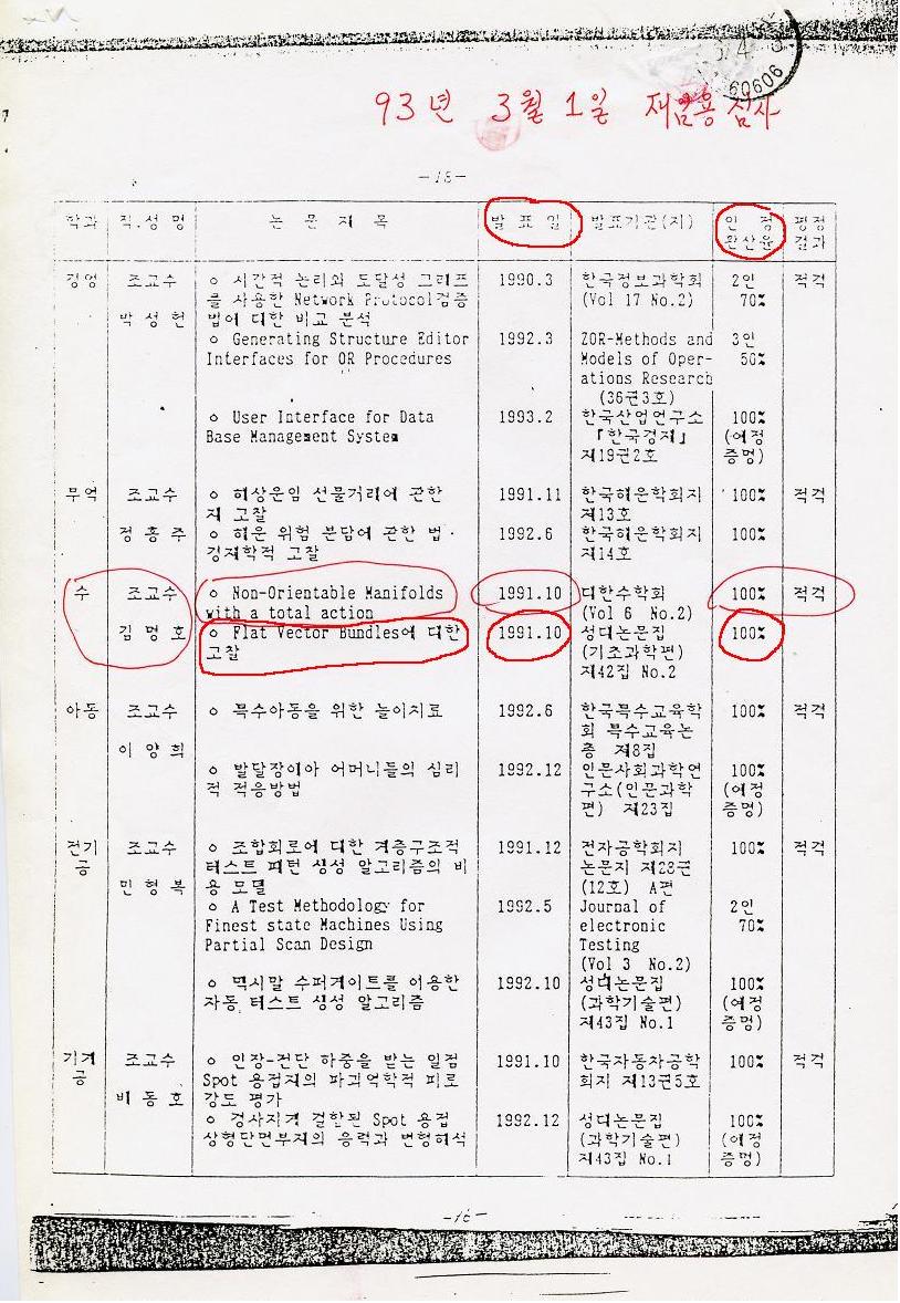 (1) 95년 4월 1일자 부교수 승진 연구실적 탈락심사