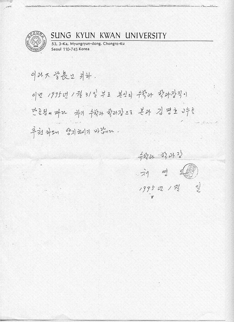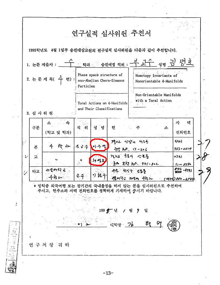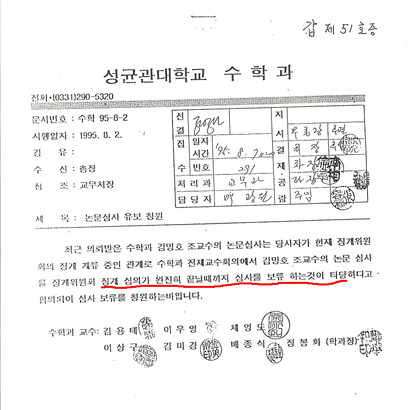 1. 갑 제51호증, 수학과 교수들의 논문심사 유보 청원
