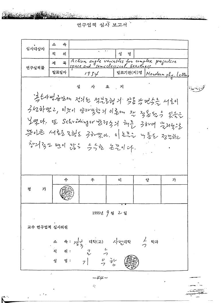 1. 갑 제55호증, 95, 4. 1. 자 연구실적심사위원회 (이우영, 채영도)추천서