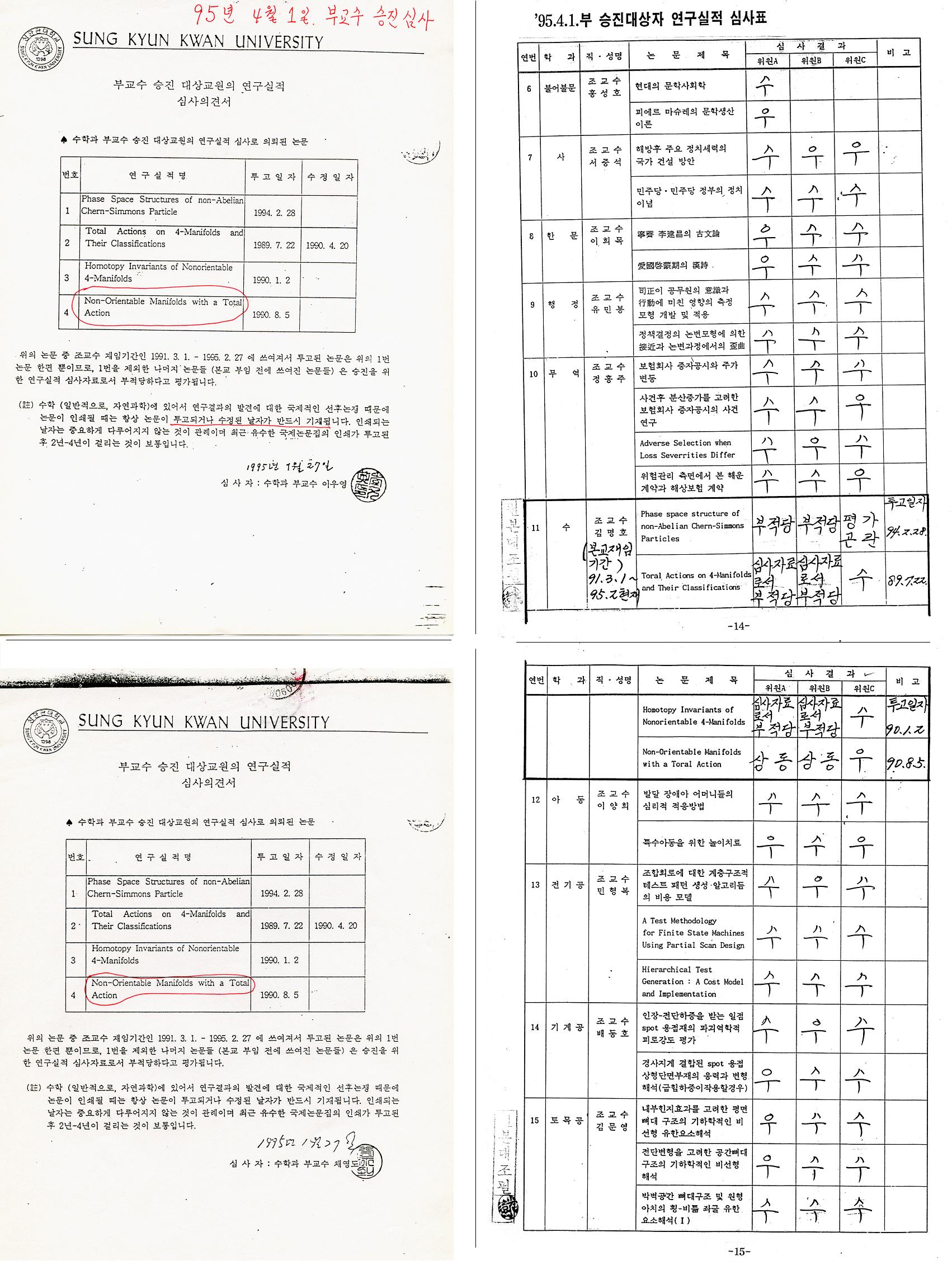 (3) [교무처장 심윤종, 총장 정범진의 연구실적심사 방해 공작] 95년 10월 1일자 부교수 승진 연구실적 탈락심사