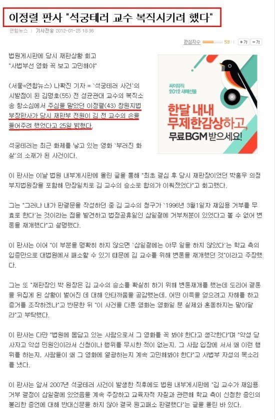 1. 갑 제53호증, 연합TV 뉴스한국일보 기사(출제오류 인정한 인터뷰)