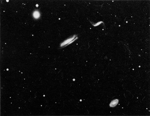 Knowing the size of our own galaxy, we have a key to the measurement of still larger distances—the distances to other galaxies. Figure 5–7 is a photograph of a galaxy, which has much the same shape as our own. Probably it is the same size, too. (Other evidence supports the idea that galaxies are all about the same size.) If it is the same size as ours, we can tell its distance. We measure the angle it subtends in the sky; we know its diameter, and we compute its distance—triangulation again!