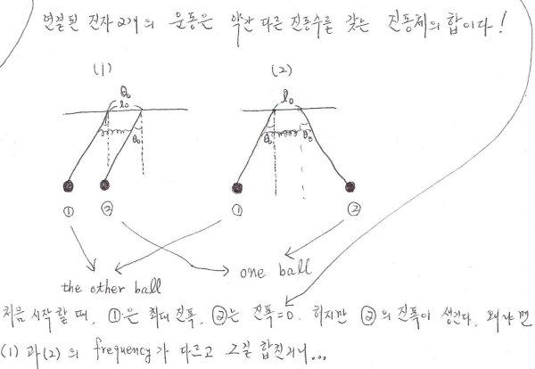22.4.20: 연동 진자의 mathematical projection(물리적 현상을 수학적으로 표현하는 것)은 adding two waves