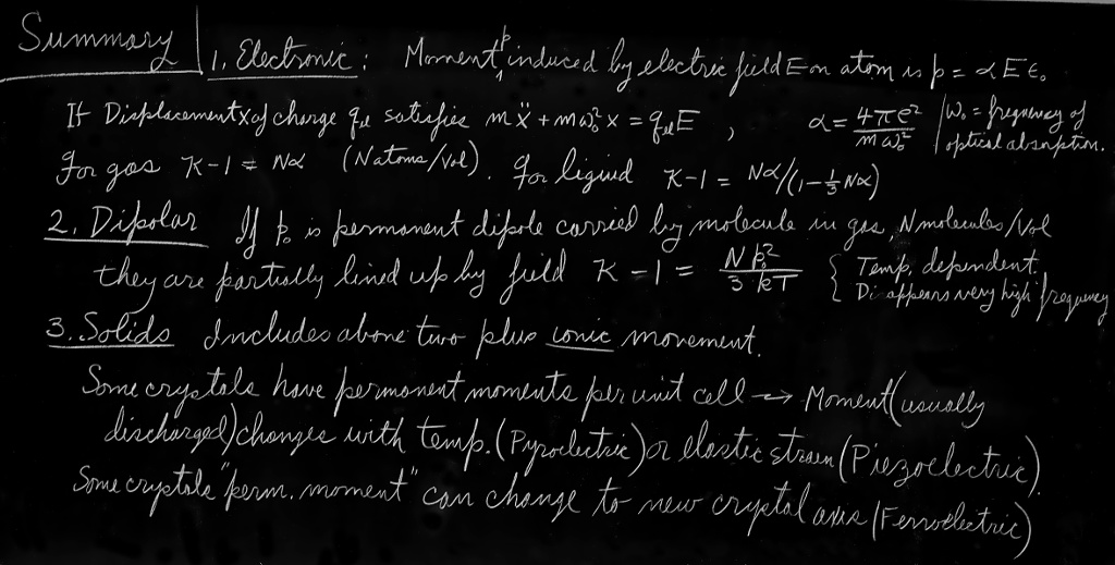 This completes our rather detailed report on our present understanding of the dielectric constants of gases, of liquids, and of solids.