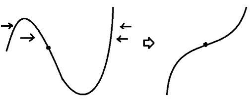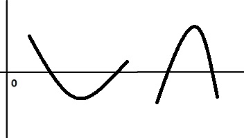 이것을 기하학적으로 풀이하면, $\alpha$ 좌우로 $x$축을 만날 때까지 증가하거나 감소하여야 한다는 것, 즉 아래 왼쪽 그림과 같은 그래프는 불가능하며, 오른쪽 그림과 같이 항상 x 축을 만나야 한다는 것.
