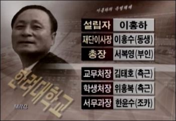 그리고 저희 한려대 교수협의회의 제보와 진정에 힘입어 지난 해 정기 국회에서는 이홍하 씨 내외의 온갖 비리가 국정 감사의 도마에까지 올라 국회 속기록에 영원히 남게 되었습니다. 교육위원회 의원들은 소속 정당을 막론하고 이구동성으로 이홍하 씨 부부의 파렴치한 등록금 횡령과 전횡을 맹렬하게 성토했고, 그런 범법적인 학교 운영을 방관한 교육부의 무책임을 신랄하게 따졌습니다.
