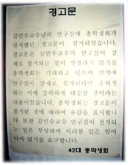 김민수 교수 연구실 문짝에 붙어 있는 경고문들... 한눈에 분위기가 보인다.