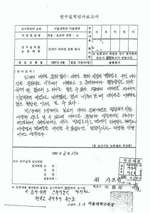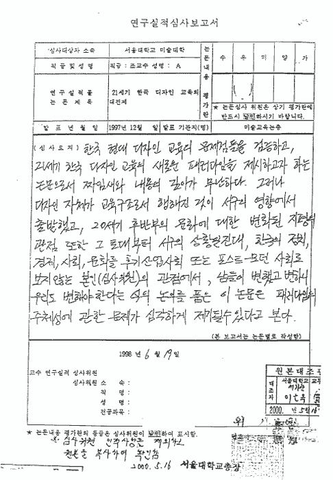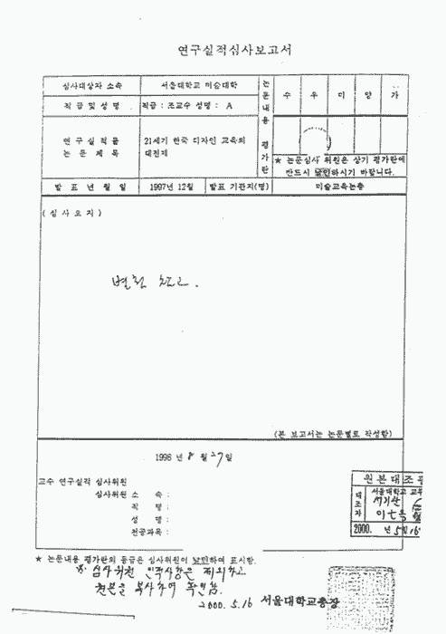 * 저서에 있지도 않은, 5장을 언급한 심사표