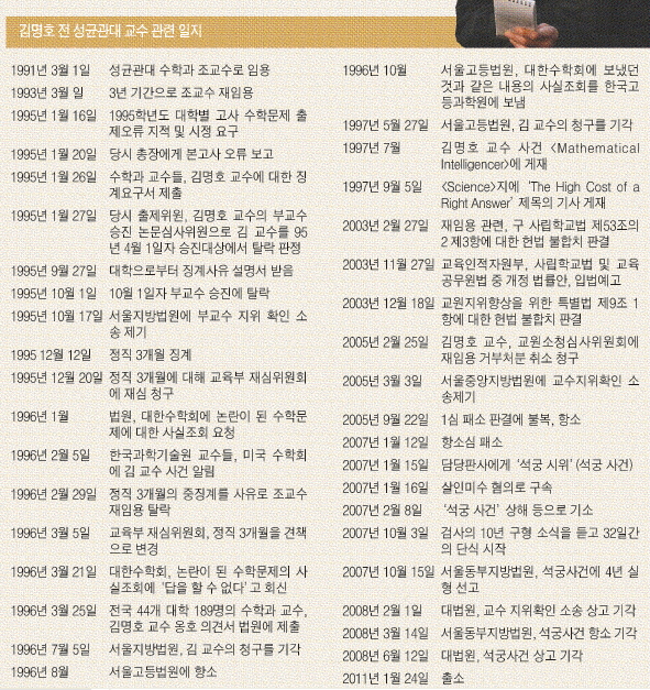 오류를 지적한 뒤 부교수 승진에서 탈락하고 ‘부교수 지위 확인 소송’을 냈을 때 수학 교수 189명이