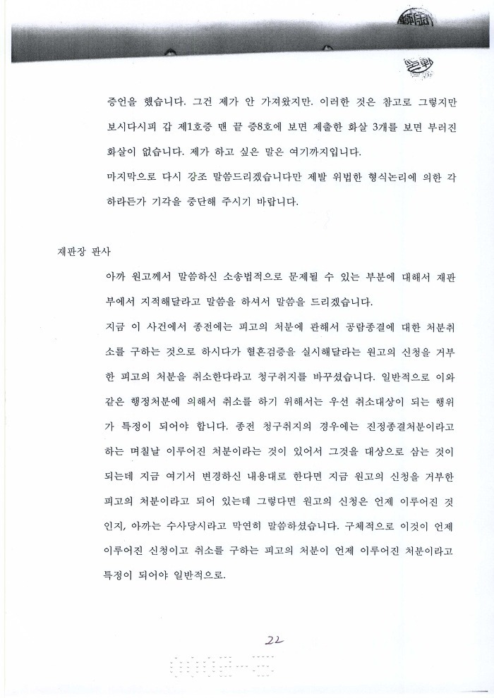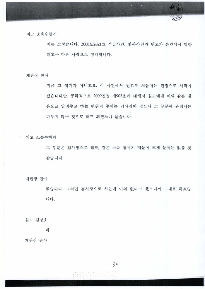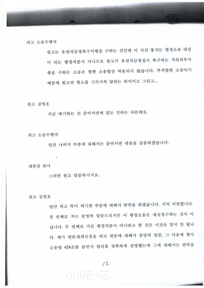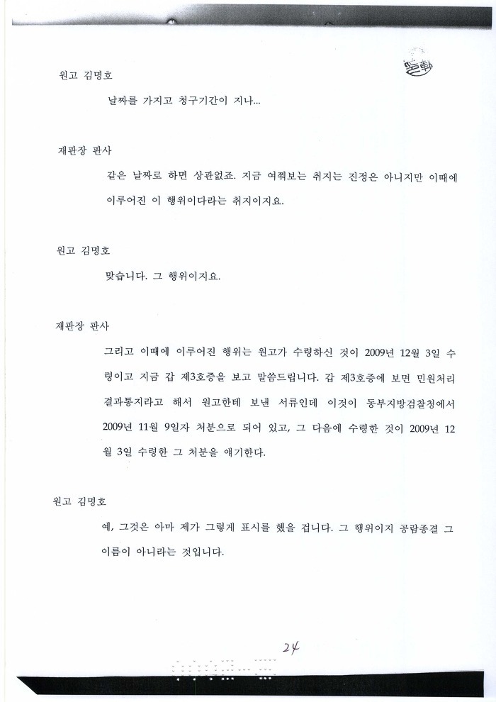 검찰이 인정하고 재판부가 확인하였다는 것이 이 행정소송의 성과 !