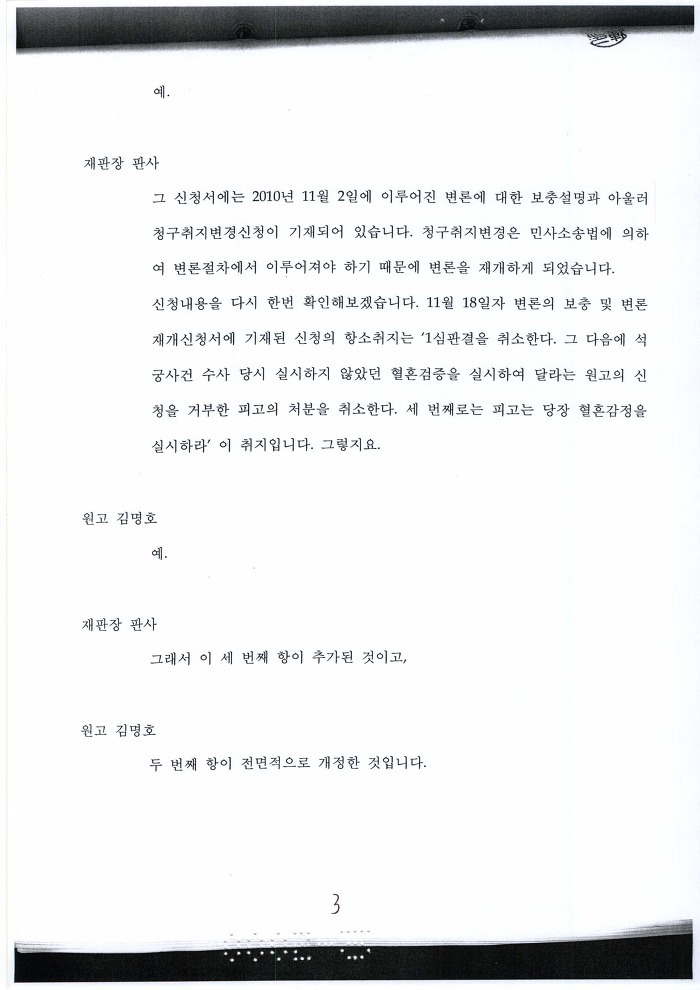 국과수에 유전자 감정의뢰 보낸 목적이 뭐냐? 혈흔 일치 여부 판단하려고 하는 거 아냐?
