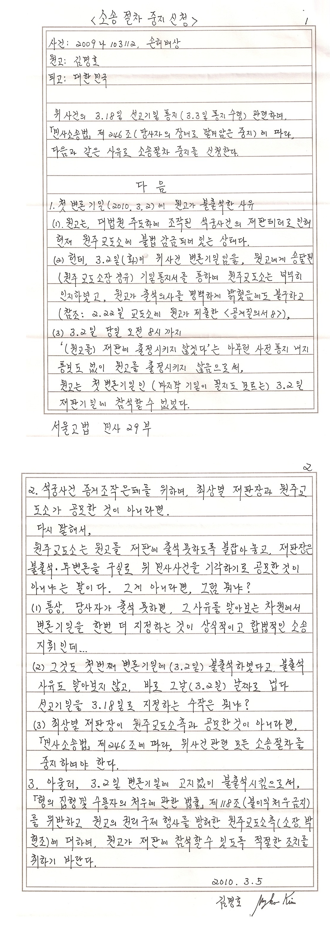 2010.03.09 원고 김명호
